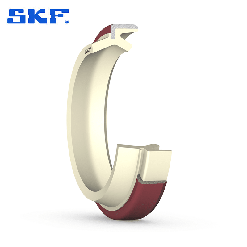 然而,作用在朝向内部的唇口上的额外的系统压力,例如通过损坏的活塞杆密封件的流体压力,可能大于沟槽与骨架之间的挤压力,并可将防尘密封件推出沟槽。 因此,SKF 建议将双作用防尘密封件与单唇设计的 U 型活塞杆密封件(例如S1S 型)配合使用,从而使压力流体可以返回到液压系统中。 在发生压力聚积的情况下,可能还需要使用卡环将防尘密封件保持在沟槽中。